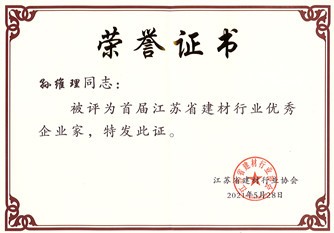 • 董事長(zhǎng)孫維理榮獲“2021年江蘇省建材行業(yè)優(yōu)秀企業(yè)家”榮譽(yù)證書(shū)